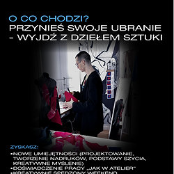 Przynieś swoją rzecz - wyjdź z autorskim unikatem i nowymi umiejętnościami. Trzygodzinne, kameralne ekologiczne warsztaty z customizacji i upcyclingu prowadzone w Pracowni Tomasza Armady. Przynosisz swoje ubranie, któremu chcesz nadać nowe życie (albo wybierasz bazę na miejscu), a my - krok po kroku - przeprowadzamy Cię przez proces od idei do gotowego efektu „jak w atelier”. Pracujesz ręcznie z naszym zespołem nad realną metamorfozą rzeczy: uczysz się projektowania, tworzenia nadruków, podstaw szycia, pracy z kolorem i kompozycją. To praktyczne zajęcia, z których wychodzisz z własnoręcznie stworzonym, gotowym do noszenia ubraniem oraz zestawem umiejętności, które wykorzystasz dalej. Techniki i proces (w cenie udziału): Nadruki (m.in. folia flex z naszej bazy). Aplikacje / kolaże z pasmanterii, ścinków i ozdobnych tkanin. Barwienie / malowanie i praca z kolorem. Dekonstrukcja i drobne poprawki krawieckie (dopasowanie, skrócenia, detale). Dla kogo? Dla początkujących i zaawansowanych. Nie musisz umieć szyć. To świetny sposób na kreatywny weekend: solo, w duecie lub w małej ekipie. Atmosfera - przyjazna i mentorska; pracujemy w kameralnej grupie. Co zapewniamy: Dostęp do bazy tkanin, ścinków, pasmanterii, folii i materiałów plastycznych. Profesjonalnie wyposażoną pracownię, narzędzia i wsparcie techniczne. Kawę, herbatę i drobny poczęstunek. Możliwość wybrania ubrania-bazy na miejscu (opcjonalnie, cena zależna od rodzaju). Dodatkowe usługi (opcjonalne, limit miejsc - możesz zarezerwować przez stronę) Personalizowany nadruk (projekt/wycięcie/aplikacja): od 50 zł/szt. (w zależności od formatu). Dopasowania / zmiany konstrukcyjne na bazie naszych wykrojów + pomoc w szyciu: ok. 250 zł. Profesjonalne barwienie / malowanie / pro-custom wykonywane przez prowadzących: ok. 200 zł. Te dodatki są nieobowiązkowe, podstawowa wersja warsztatów daje szeroki wachlarz efektów. Dodatki wybierasz przed wydarzeniem (przez stronę) lub na miejscu; liczba slotów jest ograniczona (część prac może wymagać dodatkowego czasu poza godzinami warsztatów). Prowadzący Tomasz Armada - założyciel marki. Eksperymentuje z recyklingiem i upcyclingiem, tworzy ubrania do noszenia, na wybieg, do przedstawień i jako autonomiczne dzieła sztuki. Filip Holak — artysta wizualny / projektant tkanin. Specjalista koloru i powierzchni: barwienie, malowanie, nadruki i detal, przekłada pomysł na czytelny, gotowy do noszenia efekt. Weź ze sobą: 1–2 rzeczy do przeróbki (jeans, bluza, koszula itd.).